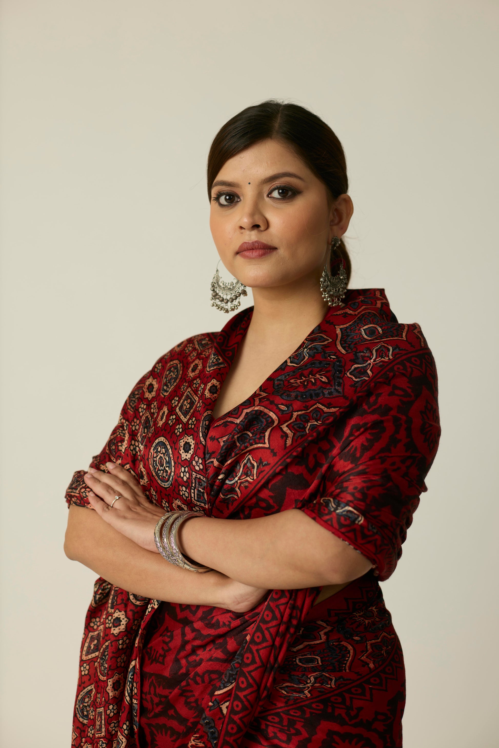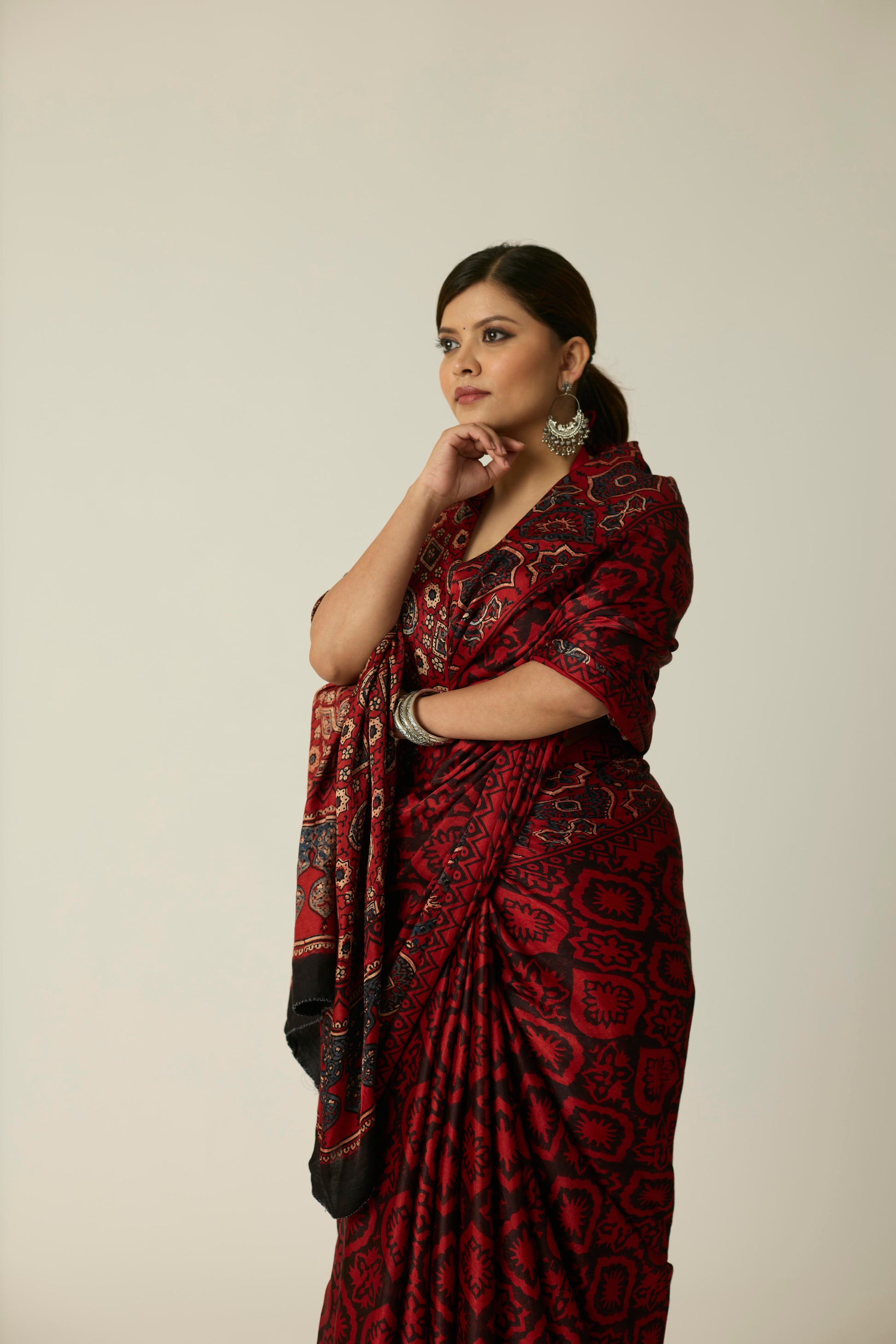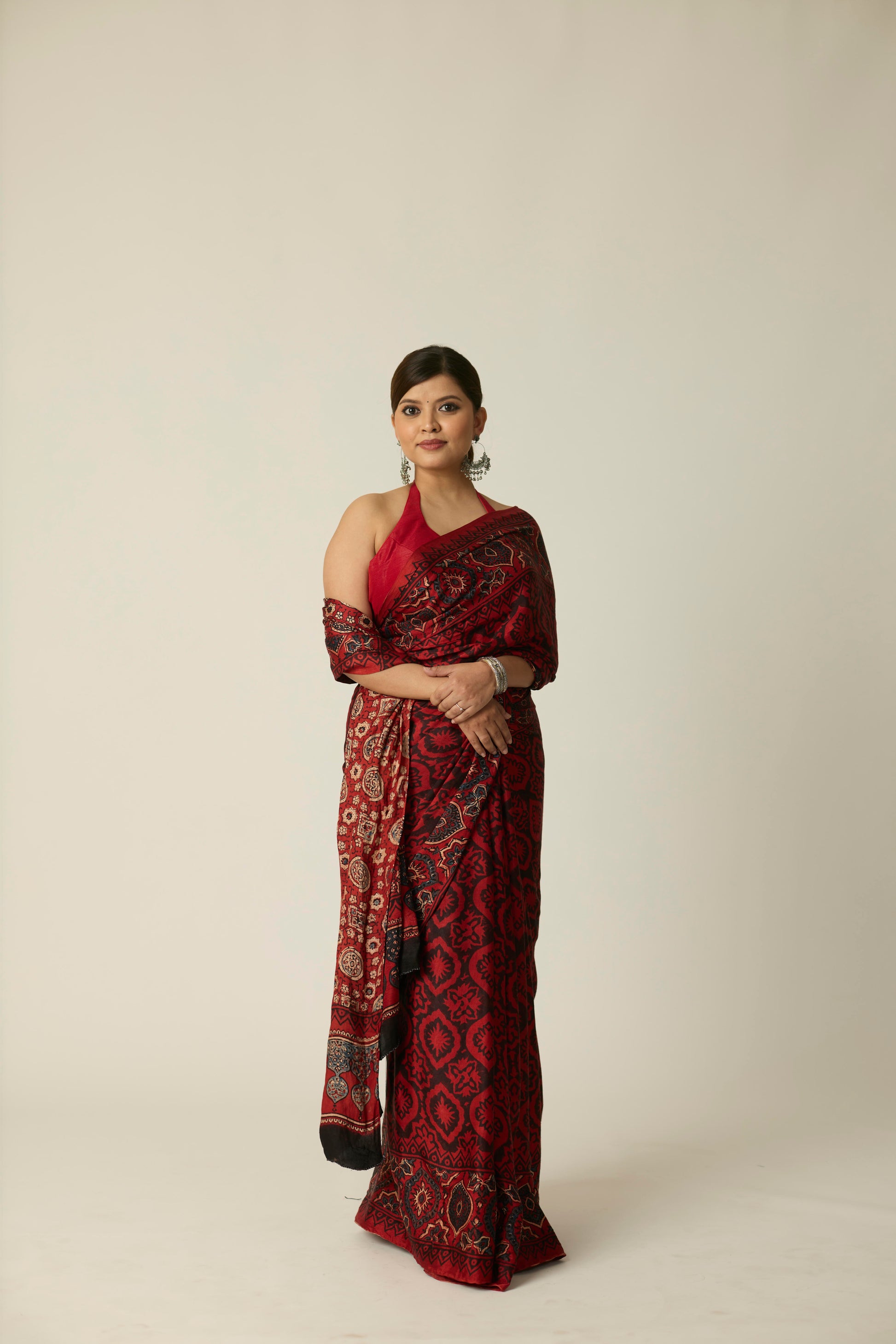 The Rakta saree is crafted in pure mulberry silk with a natural sheen that delivers a sumptuous drape and elegant luster that turns heads. It drapes with finesse and moves with grace, a clear standout for those who appreciate elegance without effort.
