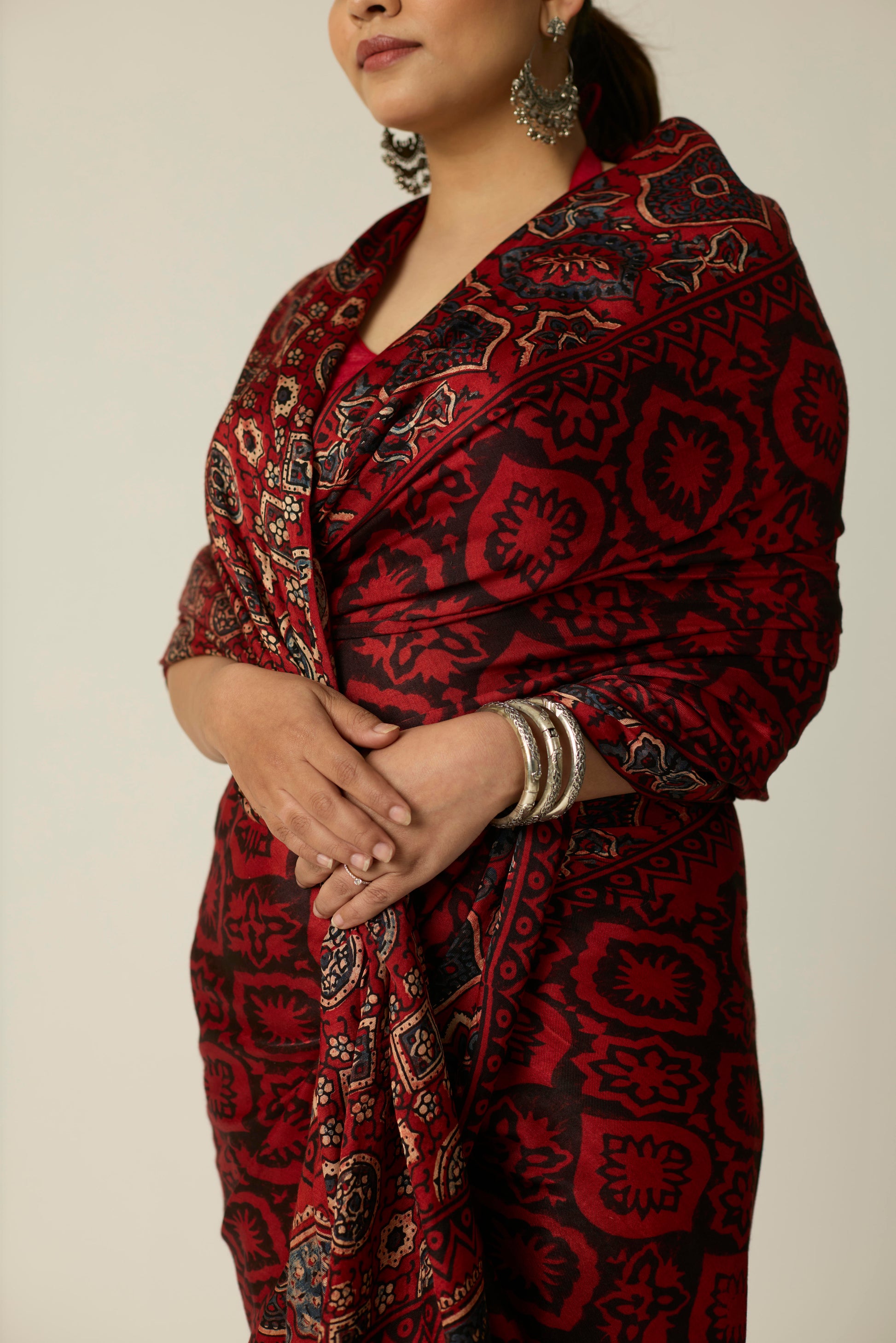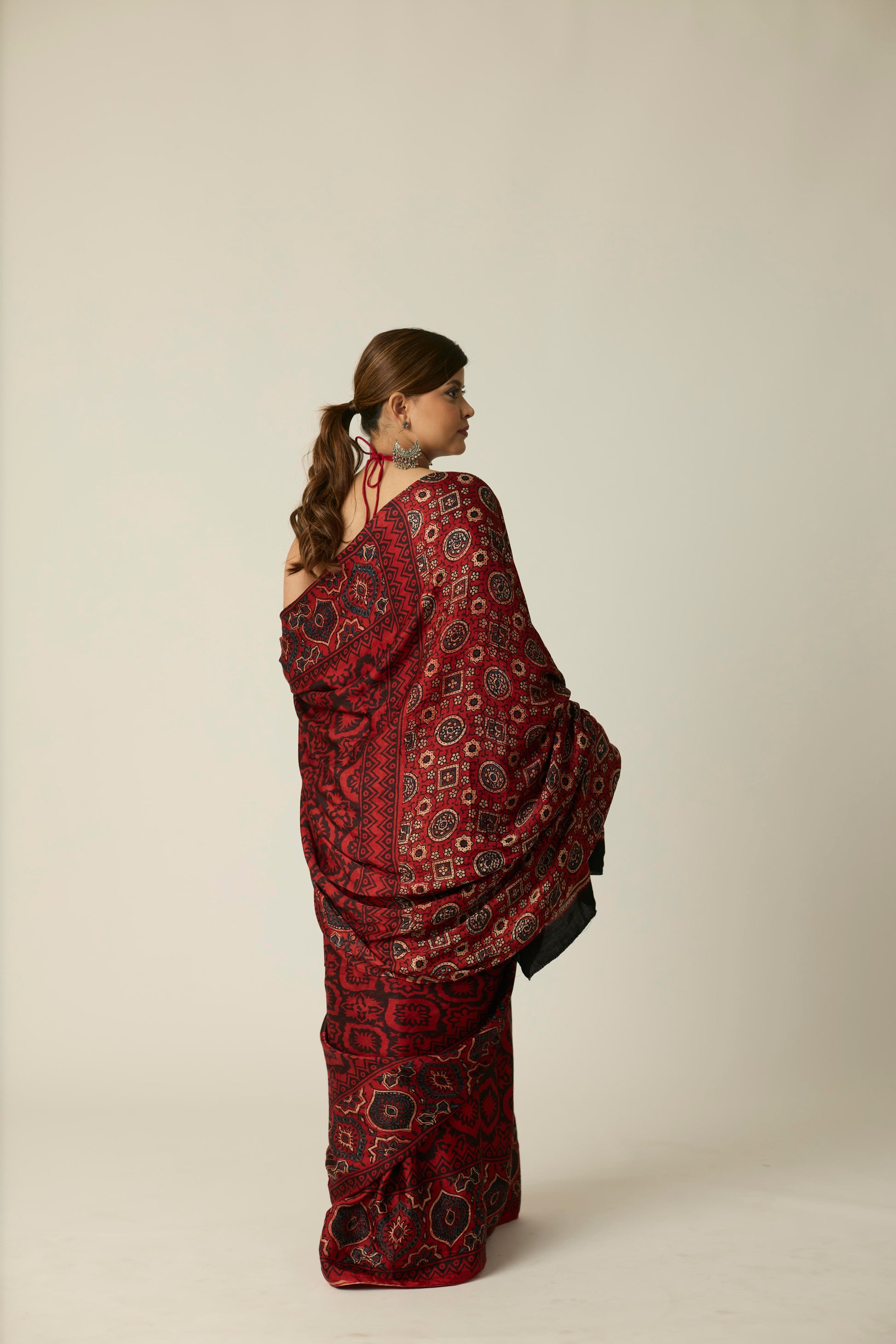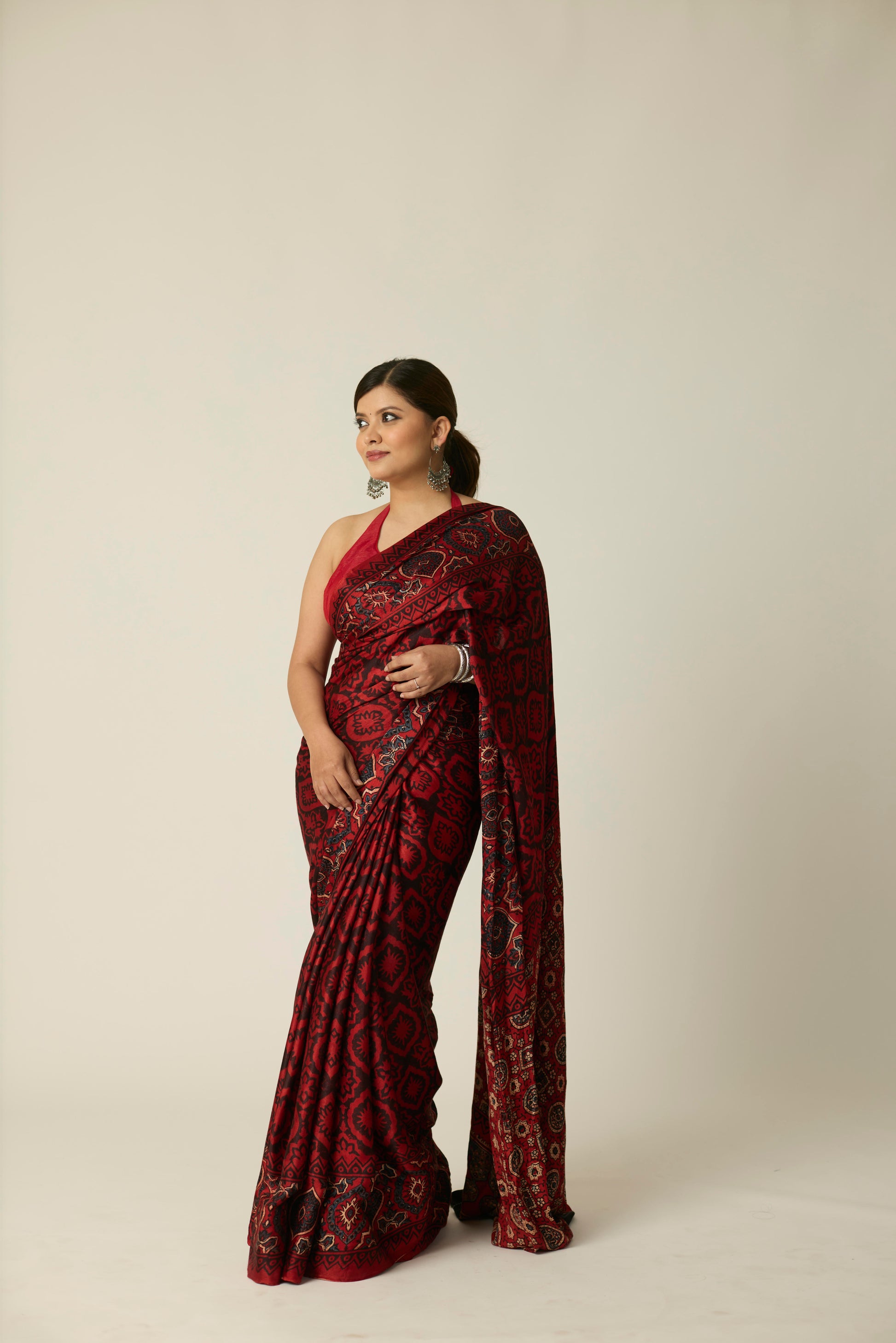 The Rakta saree is crafted in pure mulberry silk with a natural sheen that delivers a sumptuous drape and elegant luster that turns heads. It drapes with finesse and moves with grace, a clear standout for those who appreciate elegance without effort.